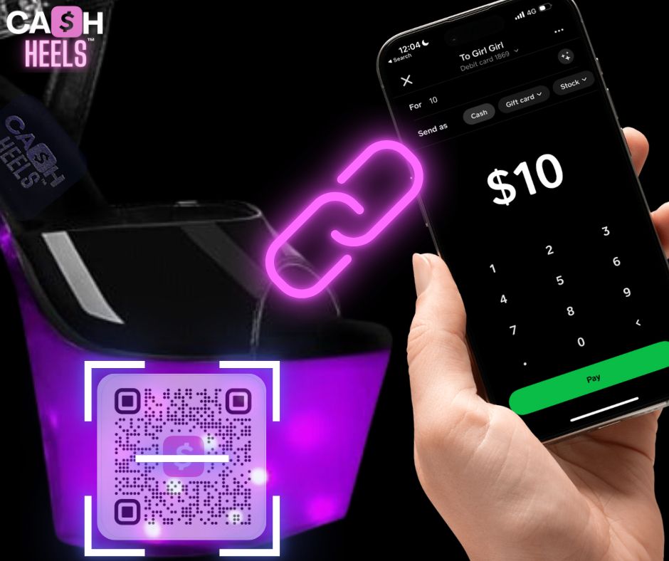 Cash Heels blend the world of fashion and finance as a pioneer for the ambitious, modern individual. Each pair is uniquely customized with your personal QR code integrated into the platform. People can easily scan the code, linking directly to your profile for seamless transactions. Their unique style invites others to engage, often leading to generous donations and endless networking opportunities.